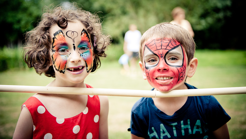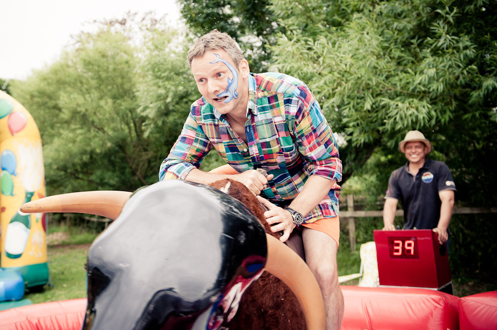 Burford Family Portrait Photographer: Big parties are great fun so when I got a call asking me to capture family and friends at a joint 30th and 40th birthday party in beautiful Burford in Oxfordshire, I was thrilled. Molly had organised a photographer (me!) for her friends, Portia and Crispin, and wanted me to simply record the events of the afternoon and evening – nothing too posed (apart from a few family shots), lots of smiles, children playing, grown ups relaxing, etc, etc. The guys had obviously gone to a lot of trouble to ensure everyone was in for a great day: bouncy castles, face painting, sumo wrestling, rodeo rides…and that was just for the big people!
